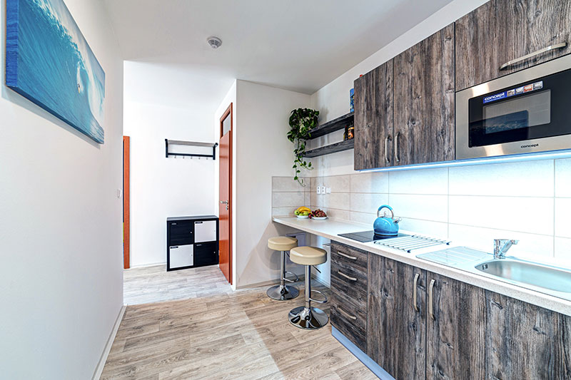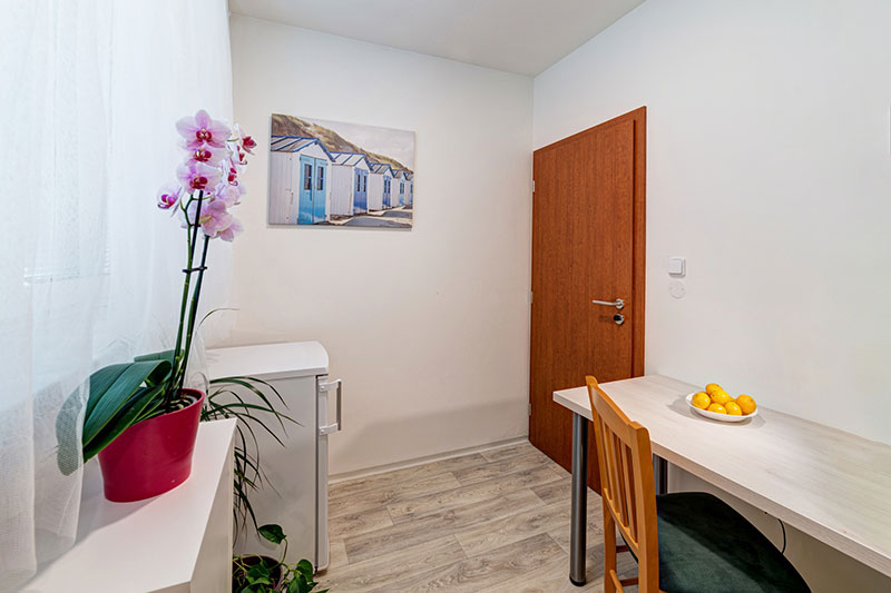 Každý bydlící má k dispozici vlastní velkou vestavěnou skříň.