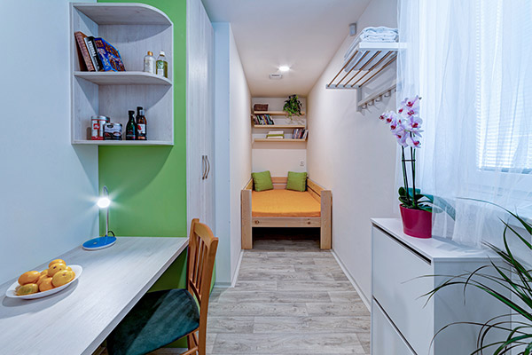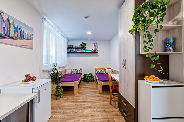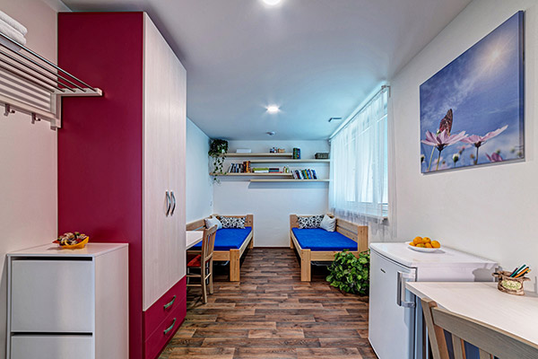 19 nově zrekonstruovaných pokojů (9 pro jednotlivce, 9 pro dvojice, 1 pro trojici) je určeno pro 30 bydlících