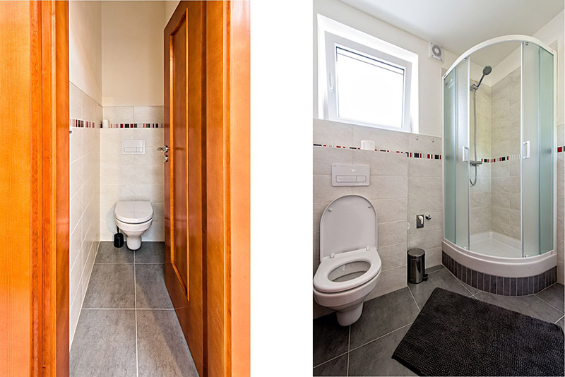 | koupelna a WC | koupelna a 2x WC společné s pokoji Dallas a Florencie |