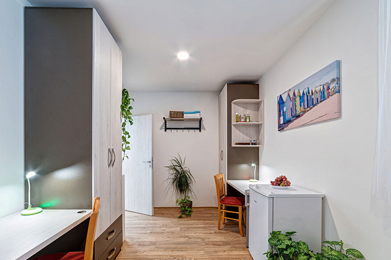 Největší pokoj v tomto domě s velkým oknem orientovaným na západ do předzahrádky. V tomto pokoji najdou pohodlné bydlení dva nájemníci. Postele jsou samostatné, umístěné proti sobě u protilehlých zdí. Dvojice skříní a stolů je doplněná samostatnou ledničkou. Kuchyně a koupelna je společná s pokojem Glasgow, tedy celkem maximálně pro 3 bydlící.