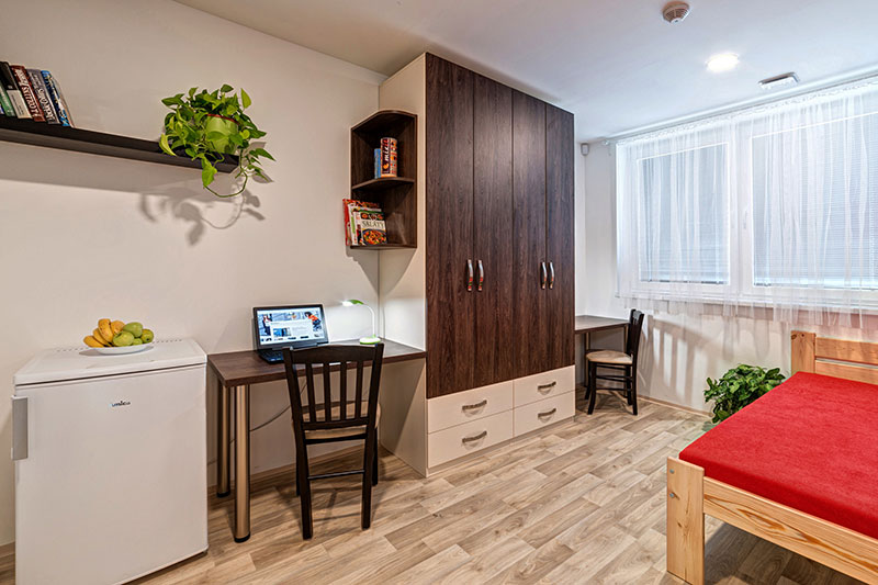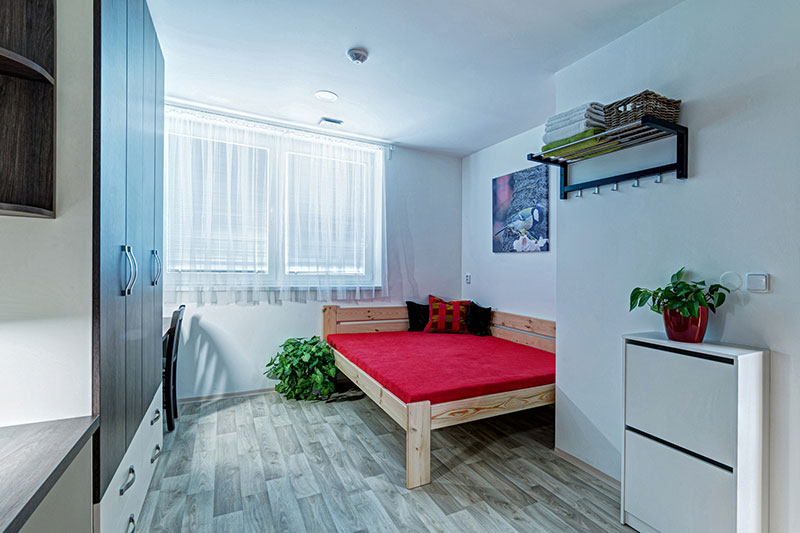 Každý bydlící má k dispozici vlastní velkou vestavěnou skříň.