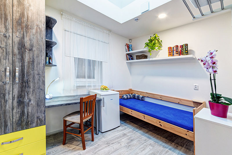 Každý bydlící má k dispozici vlastní velkou vestavěnou skříň.