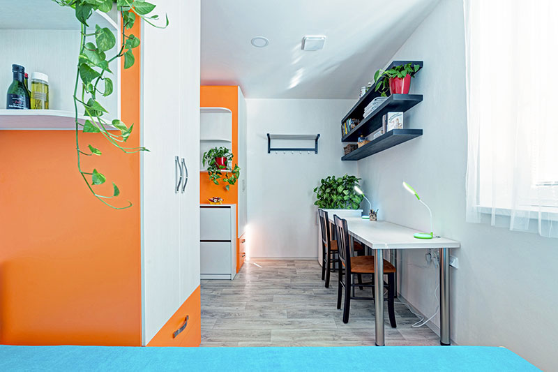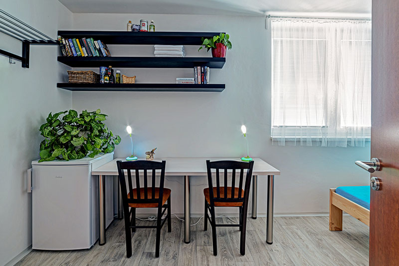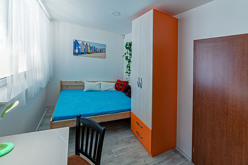 Každý bydlící má k dispozici vlastní velkou vestavěnou skříň.